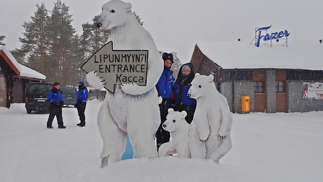 Im Büro angekommen, warteten wir noch einige Zeit auf unseren eigentlichen Guide. Wir waren froh, dass wir wieder Reetta zugeteilt bekommen haben. Sie hatte uns bereits am Sonntag bei der Schneeschuhwanderung begleitet. Reetta brachte uns in einer weiteren Stunde Fahrt nun wirklich zum 'Ranua Wildlife Park'. Gleich beim Eingang ließen wir uns mit Eisbären fotografieren.